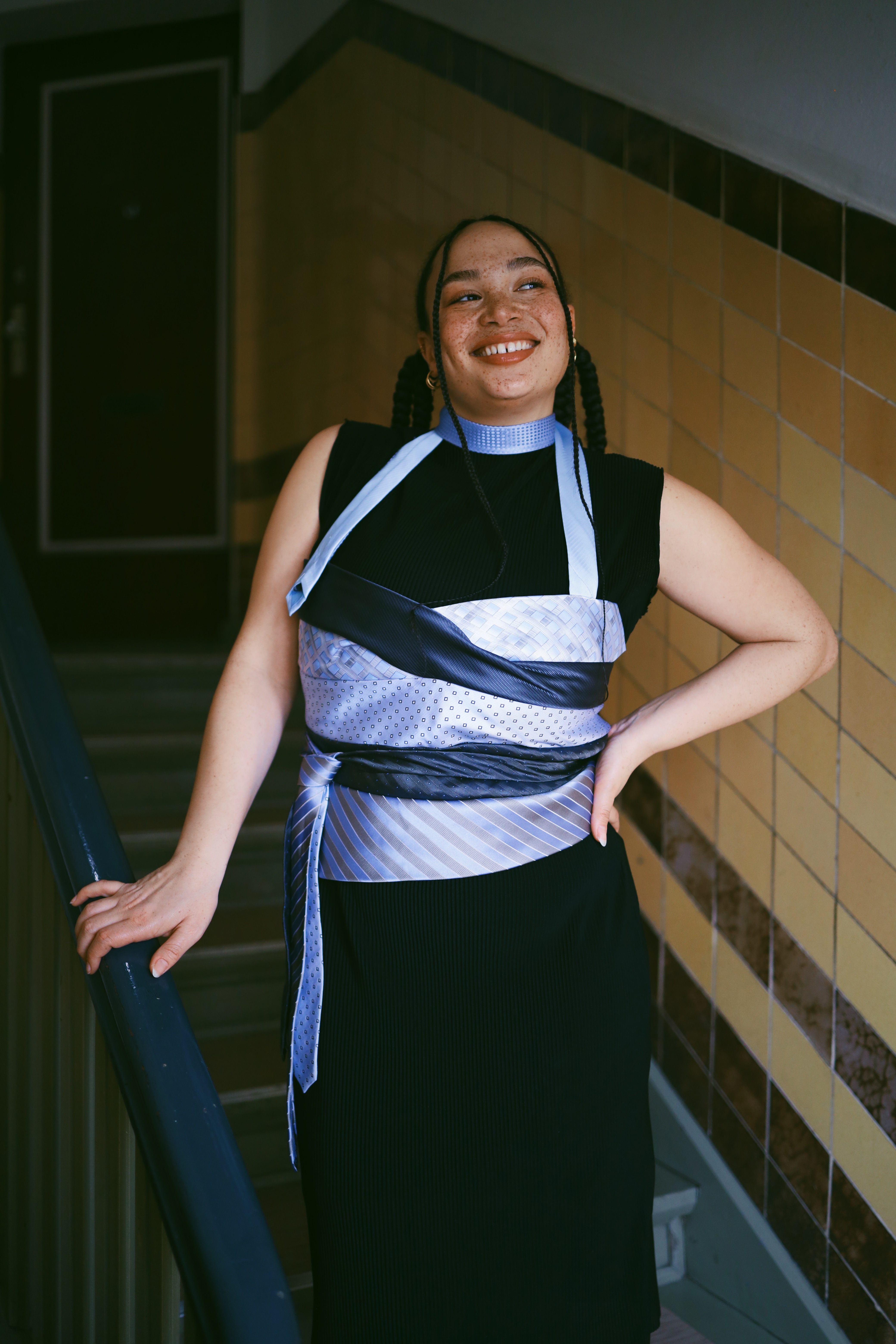 Jede Krawatte bringt ihre eigene Struktur, Farbe und Geschichte mit. Dadurch entsteht ein Piece, das nie identisch reproduzierbar ist.